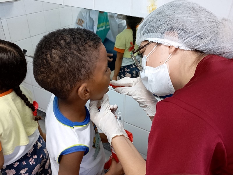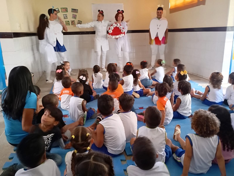 Os alunos da EMI Emei Leni Lopes de Araújo tiveram uma manhã especial cheia de diversão e aprendizados sobre cuidados de higiene bucal nesta terça-feira (14). As atividades fizeram parte da programação da 14ª Semana do Bebê, realizada pela Prefeitura de Juazeiro, por meio da Secretarias de Saúde (Sesau), de Desenvolvimento Social, Mulher e Diversidade (Sedes) e de Educação e Juventude (Seduc). As orientações de saúde bucal foram realizadas com o projeto um ‘Sorriso do Tamanho do Brasil’, da Sesau.