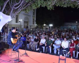 Com um anoitecer iluminado por uma imensa lua, nesta terça-feira, 10 de junho, Juazeiro foi brindada com um evento inesquecível. A Praça da Bandeira, em frente à casa onde nasceu o gênio João Gilberto, se transformou em palco, memória e poesia com o sarau “A Tardinha Cai”, uma homenagem aos 94 anos do criador do gênero que revolucionou a música e que até hoje influencia artistas de todas as nacionalidades, a Bossa Nova.