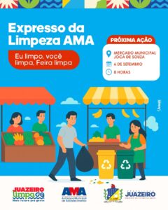 Veloz e com rota certa, a Autarquia Municipal de Abastecimento/AMA lançou, neste mês de setembro, o programa “Expresso da Limpeza AMA”, projeto que vai reforçar os serviços de higienização em feiras e mercados de Juazeiro. A ação chega para somar às rotinas semanais de higienização já realizadas nos equipamentos públicos.