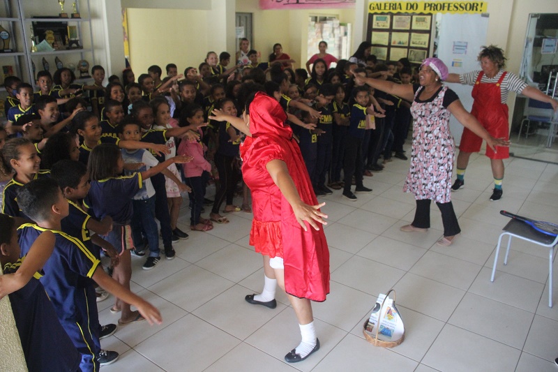 As personagens fazem parte da peça teatral: Chapeuzinho Vermelho X Aedes aegypti, organizada pelo Núcleo de Educação e Promoção à Saúde (NEPS) da Sesau. Através da fantasia do teatro, as profissionais contaram para os alunos, com idades entre seis a oito anos, sobre a necessidade de combater o mosquito. “É muito importante orientar as crianças, porque elas levam o que aprendem para seus irmãos, para os pais e para toda a vizinhança, propagando as informações. E quando se ensina de forma lúdica, é ainda melhor”, comentou a diretora da escola, Cida Miranda.