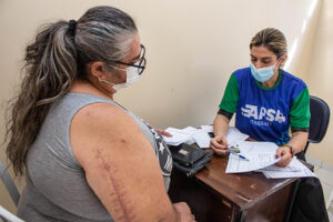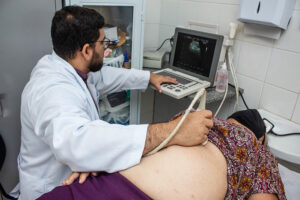 A equipe da Sesau chegou cedo à Unidade Básica de Saúde (UBS) da comunidade e iniciou a coleta dos exames laboratoriais e também a realização das ultrassonografias de abdome total. Depois iniciaram as consultas com endocrinologista, oftalmologista e ginecologista. Todos os atendimentos foram previamente agendados pela equipe da UBS de acordo com a demanda local.