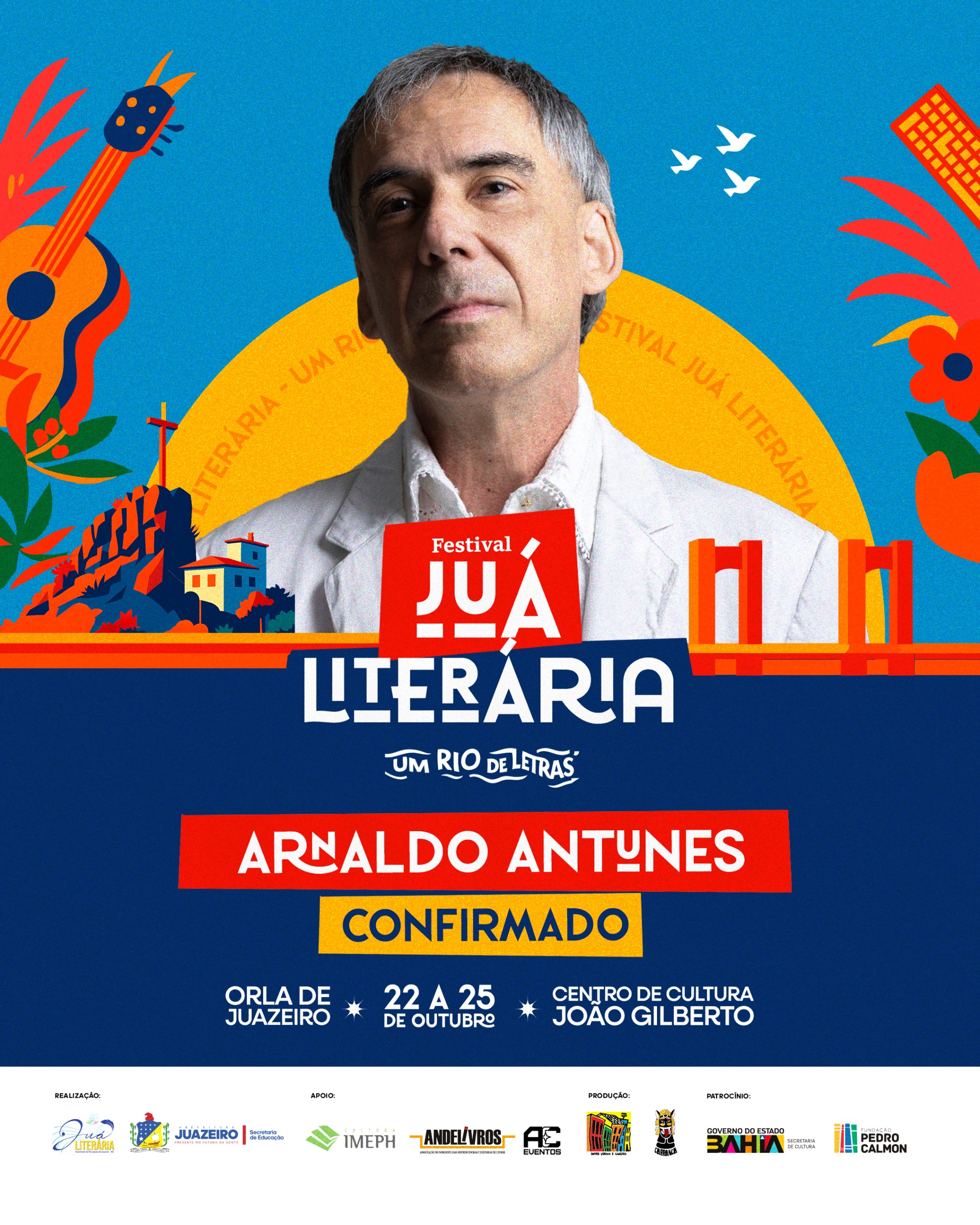 Autor de mais de 20 livros e eleito pela revista Rolling Stone Brasil como um dos 100 maiores artistas da música nacional, Arnaldo Antunes é reconhecido por unir poesia e música em uma obra inovadora e atemporal. Sua apresentação promete ser um dos momentos mais aguardados da Juá Literária, que contará ainda com nomes como Russo Passapusso, Letícia Sabatella, Xangai, Itamar Vieira Junior, Xico Sá, Cida Pedrosa, Ana Mametto, Mariana Aydar, Maciel Melo, entre outros.