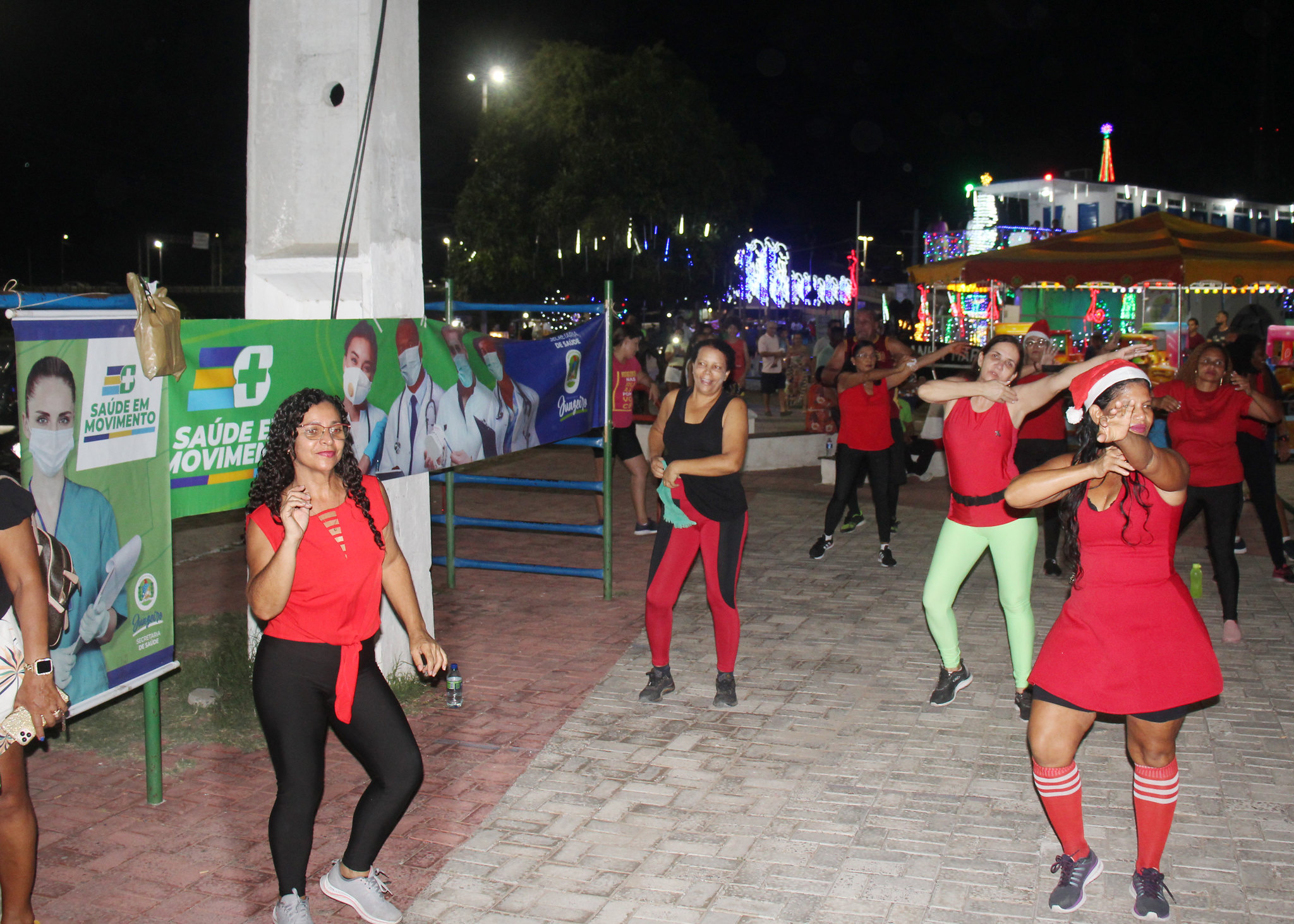O clima de festa e confraternização, típico de final de ano, tomou conta da aula de Ginastica Funcional da Academia da Saúde realizada da noite desta quarta-feira (21), na Orla de Juazeiro. A ação fez parte do projeto Saúde em Movimento promovido pela Prefeitura Municipal, através da Secretaria de Saúde.