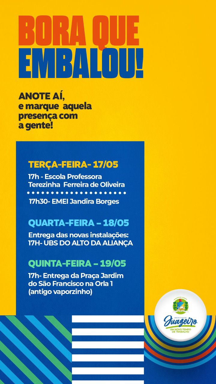 Dando sequência às inaugurações previstas em um pacote de obras e investimentos com recursos próprios do município de Juazeiro, a prefeita Suzana Ramos entregará nesta semana obras de reestruturação de Unidade Básica de Saúde (UBS), escolas e praça, garantido conforto, lazer, saúde, qualidade de vida e bem-estar aos juazeirenses.
