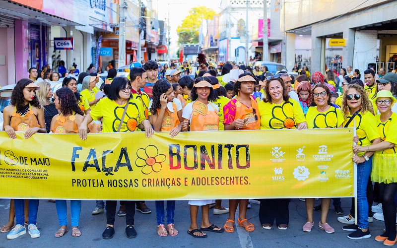 Músicas infantis, flores amarelas, fanfarras e personagens do universo infanto-juvenil tomaram conta das ruas de Juazeiro, da Praça Dedé Caxias até a Orla II, para marcar o Dia Nacional de Combate ao Abuso e Exploração Sexual de Crianças e Adolescentes, 18 de maio. “Hoje é um dia muito importante, que já faz parte do calendário municipal de eventos, instituído através da Lei n° 3.155/2023. Nós entendemos que criança tem é que brincar e não ser abusada. Essa caminhada é para chamar mais e mais a atenção da nossa sociedade. Garantir um desenvolvimento saudável e seguro para as crianças é um dever de todos”, frisou a prefeita, Suzana Ramos.