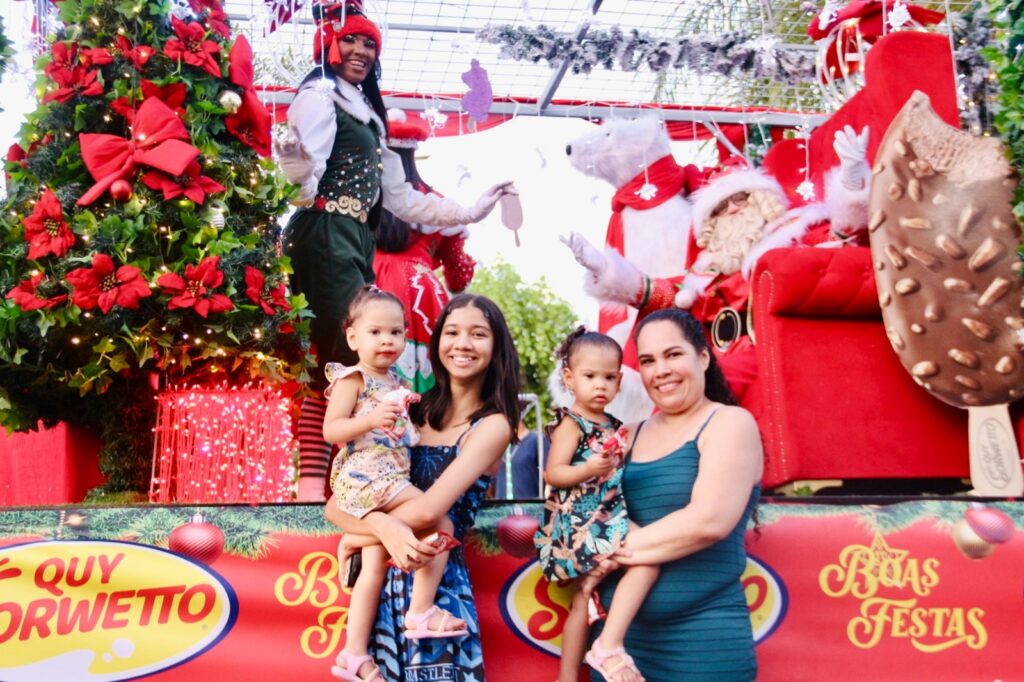 Em cada esquina, centenas de pessoas aguardavam a passagem da caravana, celebrando a chegada do Natal. Nos pontos de concentração, onde os carros da Quy Sorwetto estacionavam, longas filas se formavam — todas marcadas pela alegria de vivenciar um momento especial.