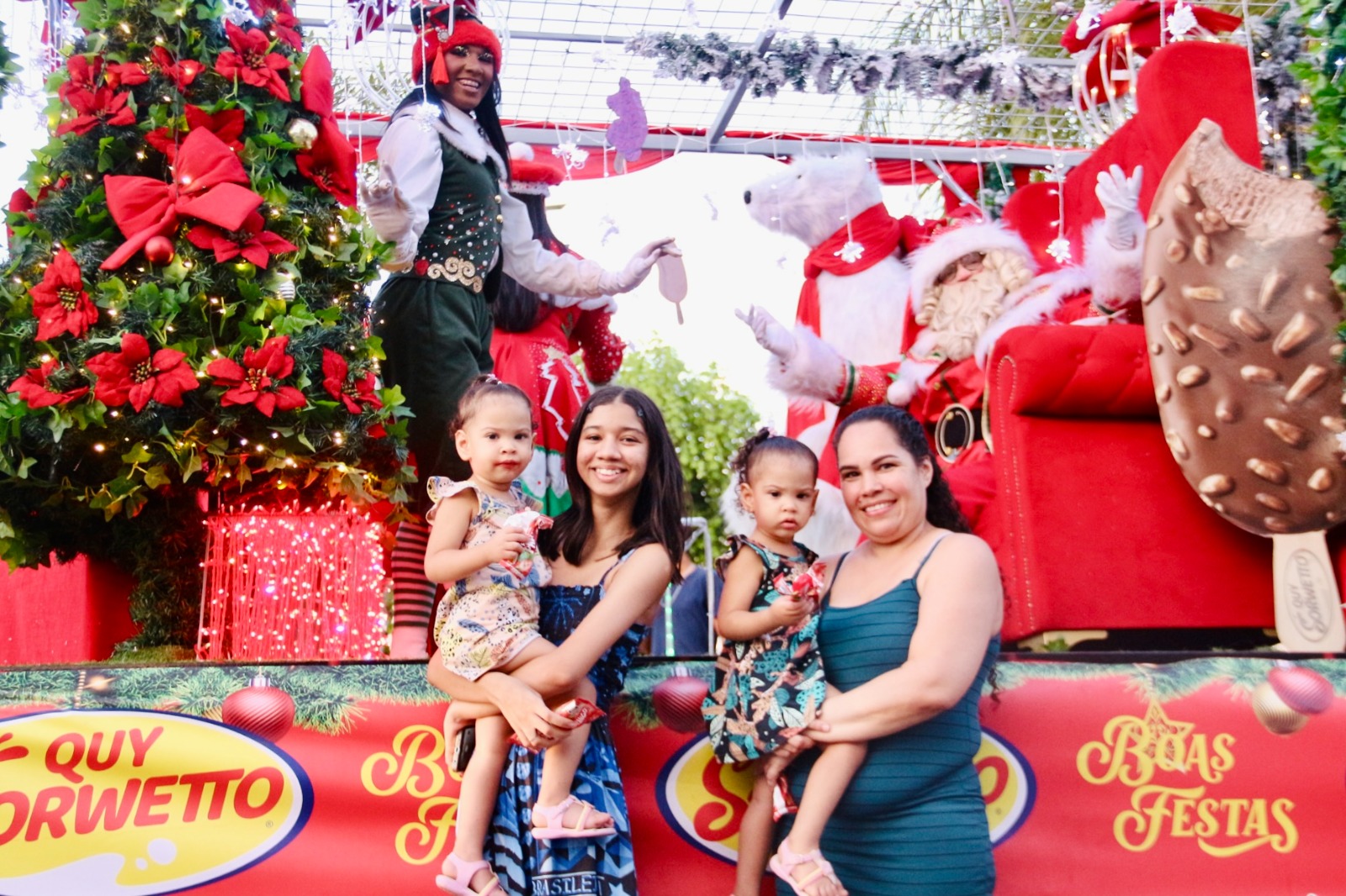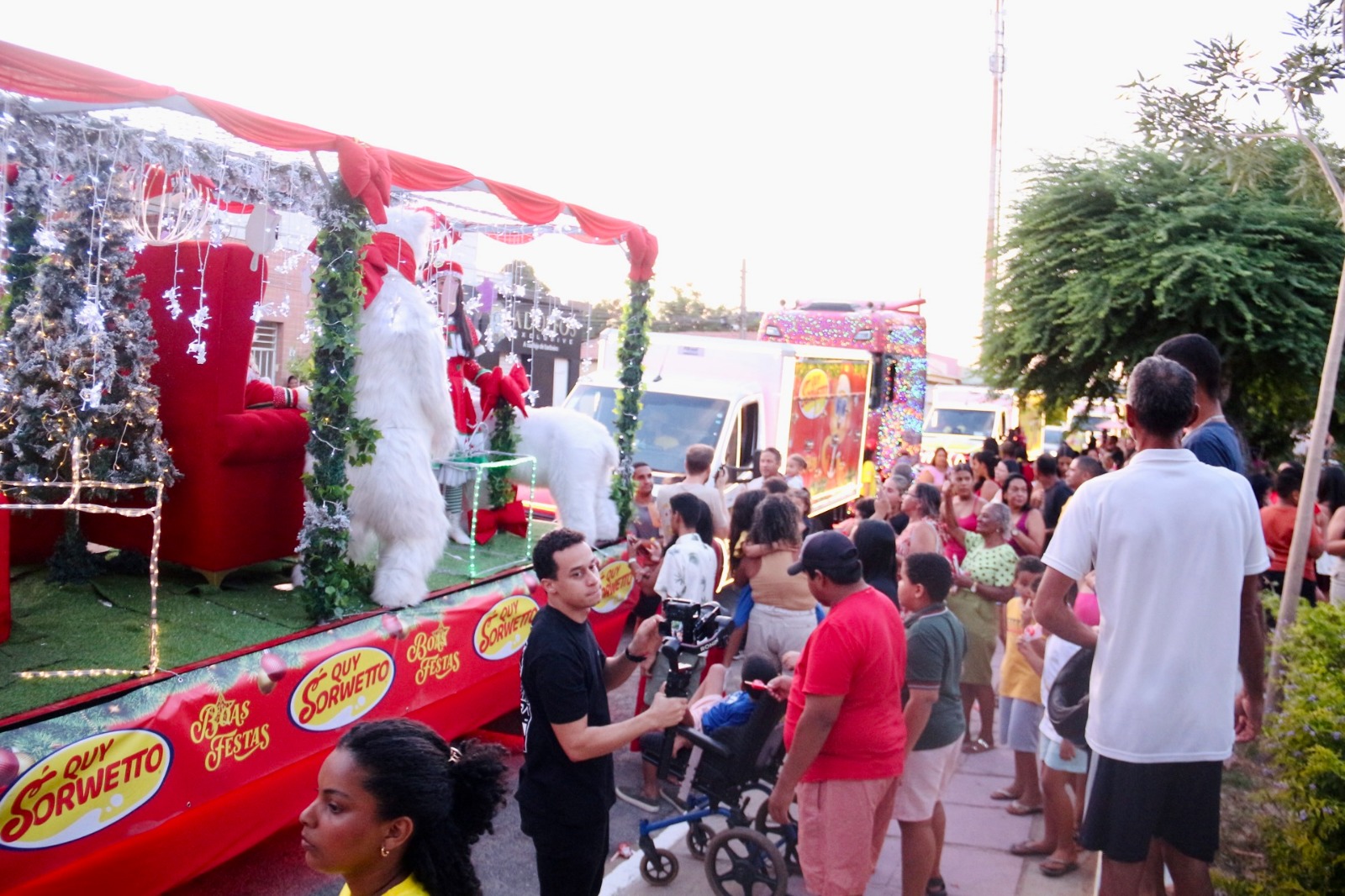 Em cada esquina, centenas de pessoas aguardavam a passagem da caravana, celebrando a chegada do Natal. Nos pontos de concentração, onde os carros da Quy Sorwetto estacionavam, longas filas se formavam — todas marcadas pela alegria de vivenciar um momento especial.