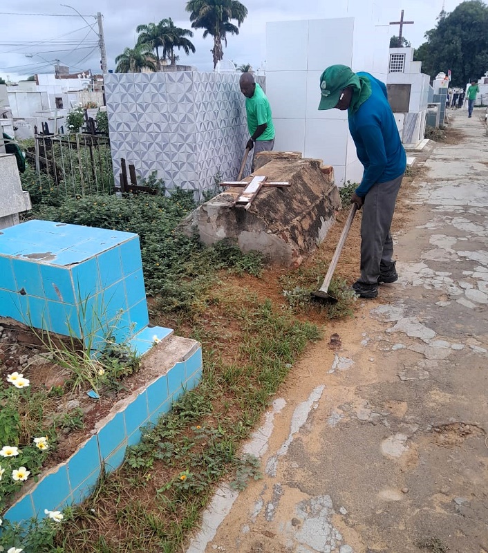 A Prefeitura de Juazeiro, através da Secretaria de Serviços Públicos (Sesp), reforça o cuidado com os cemitérios do município, tanto da sede como do interior. Os cemitérios do Centro, João Paulo II e em Maniçoba recebem atenção constante da gestão municipal, que vem reforçando o serviço neste período de chuva, quando o crescimento de mato é mais acelerado naturalmente.