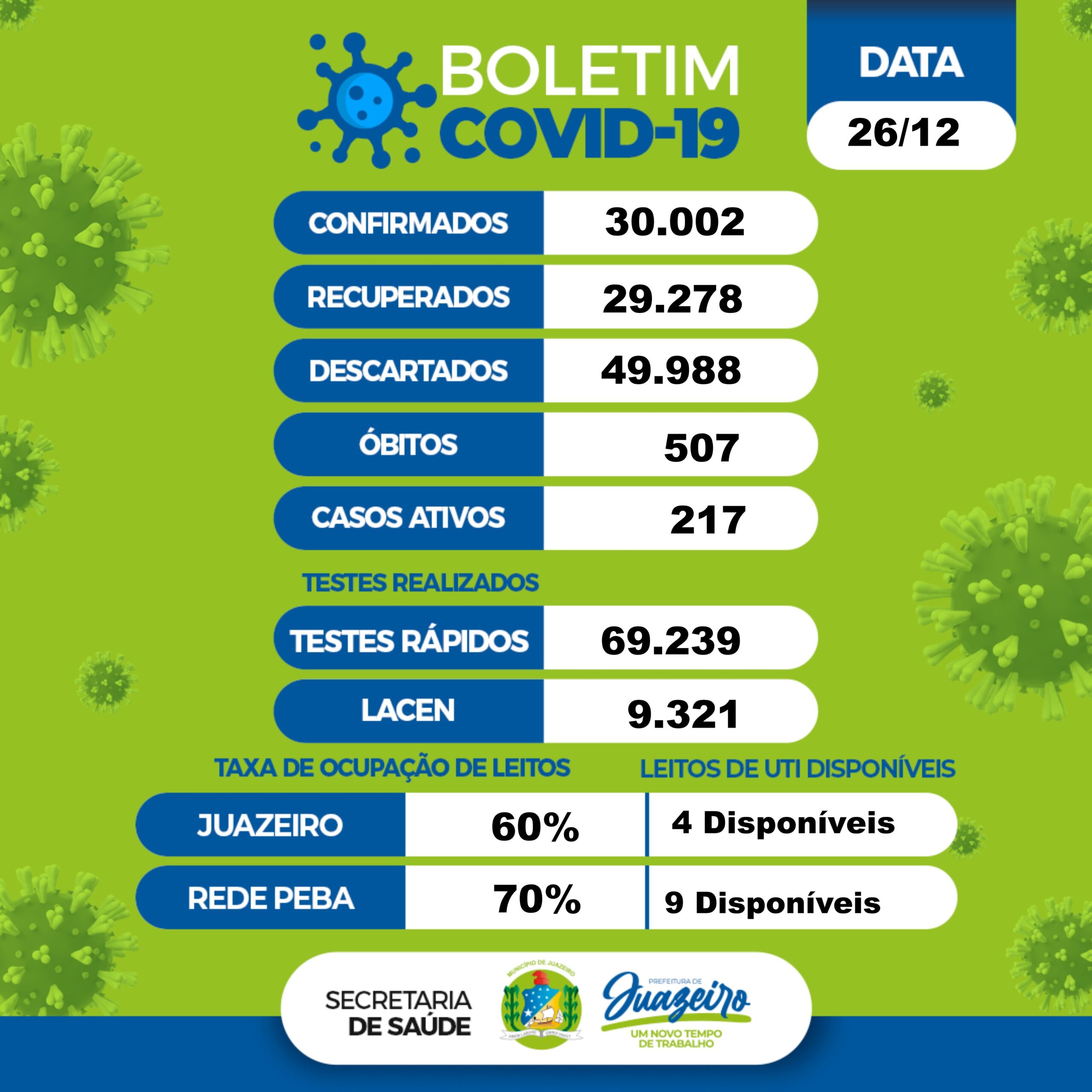 Juazeiro registrou 09 novos casos da doença. A informação está no boletim epidemiológico da Secretaria Municipal de Saúde (Sesau) desta segunda-feira (26). O município não registrou novo óbito por complicações da doença nas últimas 24 horas e permanece com 507 mortes por Covid-19.