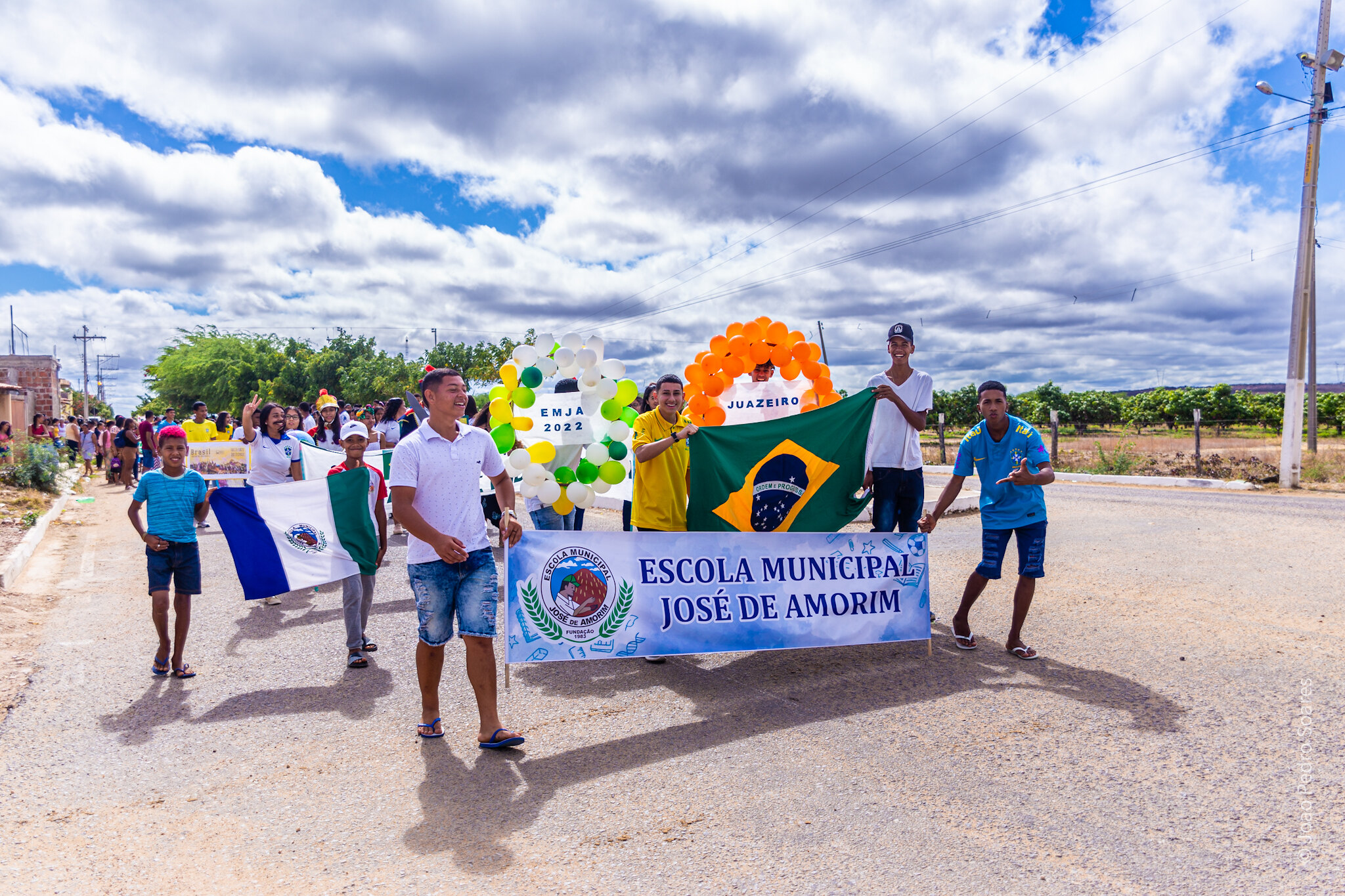 Realizado na manhã deste sábado (03), o desfile cívico da Escola Municipal José de Amorim, na Lagoa do Salitre, no interior de Juazeiro, reuniu estudantes, familiares, gestores, profissionais da educação e comunidade local para prestigiar o evento, que trouxe como tema “Juazeiro tem história e memórias: um recomeçar em um novo tempo”. Com o apoio da Prefeitura Municipal, através da Secretaria de Educação e Juventude (Seduc), a programação retornou para o calendário de comemorações escolares, após os dois anos da pandemia de Covid-19, que impediu as solenidades alusivas ao 7 de setembro.