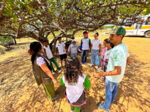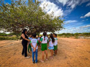 Na ocasião, a Sema trocou as paredes da sala de aula pelo chão fértil da Caatinga. Os estudantes começaram o dia com uma conversa a respeito do umbuzeiro sob a sombra de um dos muitos pés da árvore no entorno da escola. Quem estava por lá, como Maria Eduarda Lira, de 10 anos, comentou sobre a importância da planta: “Aqui o umbu é nativo; ele já nasceu sem que precisasse plantar ele. E o umbu serve para os animais e para a gente. Temos que preservar, porque sem as plantas a gente não consegue sobreviver”.