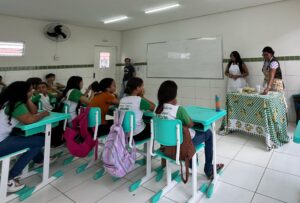 Já os estudantes mais velhos foram da teoria à prática. Em uma mostra para turmas do 7º ao 9º ano, a equipe de Educação Ambiental da Sema ensinou como preparar a tradicional umbuzada, bebida típica do Nordeste. Depois, os próprios estudantes trabalharam para a construção de um livro de receitas com o umbu, escrevendo, cada um, os pratos e modos de preparo que aprenderam com as suas famílias.
