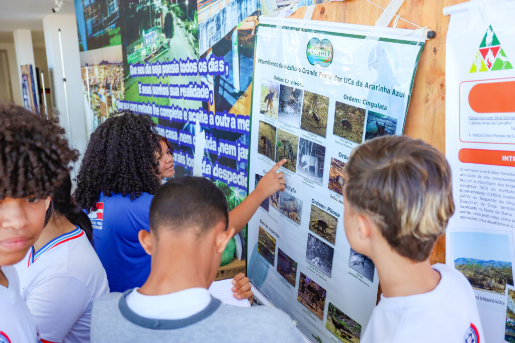 Ellen Luiza também compartilhou sua experiência com a atividade. “Hoje tivemos uma aula diferente. Assistimos a um filme sobre a Caatinga e, nele, aprendi que a Caatinga é muito mais do que as pessoas mostram. Ela não é apenas seca; é beleza, flores e animais. Achei a exposição muito legal e pude conhecer muitos animais da Caatinga. Eu sempre gostei muito da onça-pintada e descobri que, perto da gente, há uma unidade de preservação delas”, relatou.