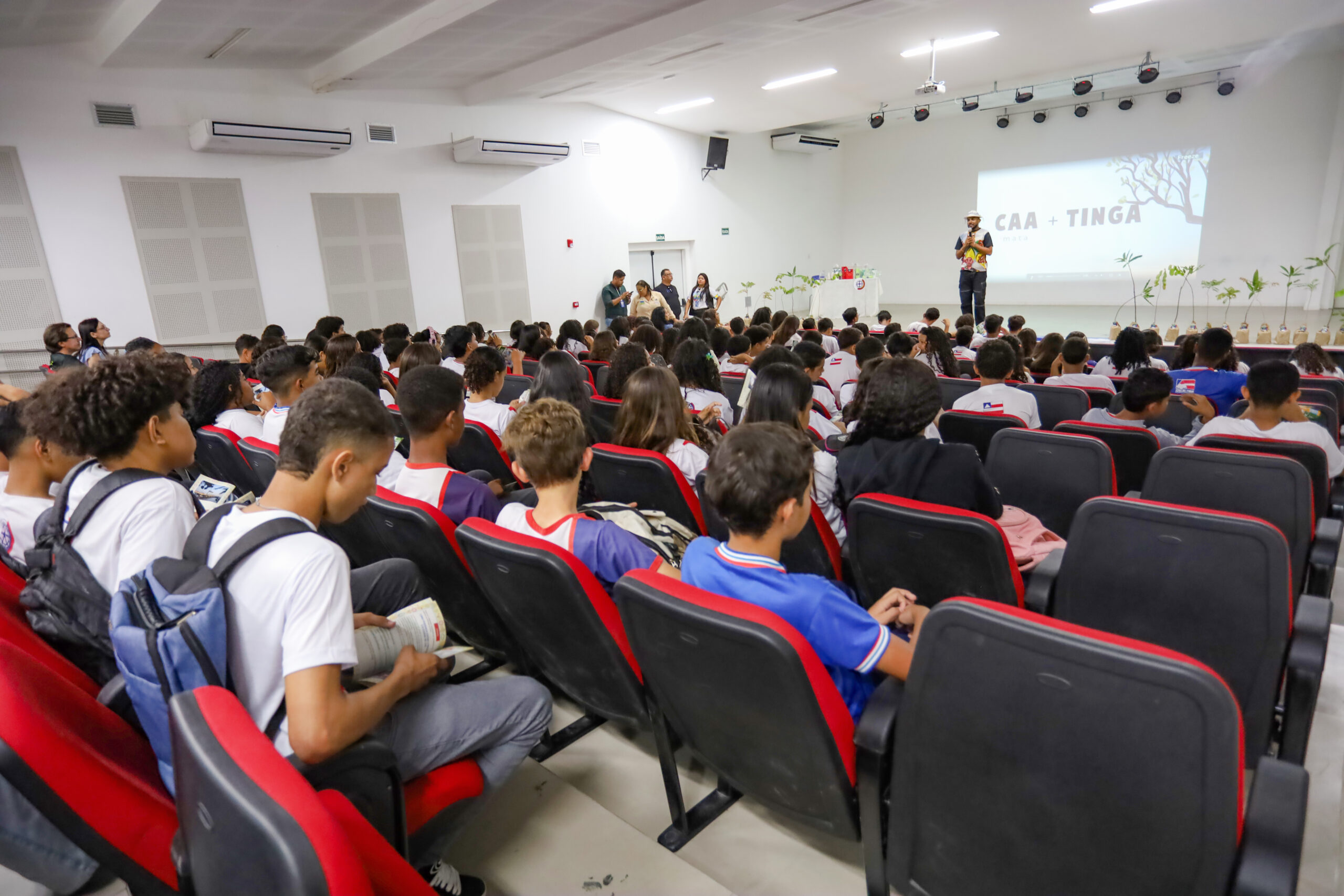 O Colégio Estadual de Tempo Integral Lomanto Júnior foi o espaço escolhido para a exibição dos curtas. Reunidos no Teatro Manuca Almeida, os estudantes assistiram atentos e fascinados à imensidão de vida que existe na nossa mata branca. Além da mostra de curtas, houve uma exposição do Instituto Chico Mendes de Conservação da Biodiversidade (ICMBio), que apresentou suas Unidades de Conservação, a Área de Proteção Ambiental e o Parque Nacional do Boqueirão da Onça, além da Área de Proteção Ambiental e do Refúgio de Vida Silvestre da Ararinha-Azul, com o objetivo de desenvolver consciência ambiental e pertencimento. Além disso, os alunos participaram de um concurso de poemas e do plantio de mudas.