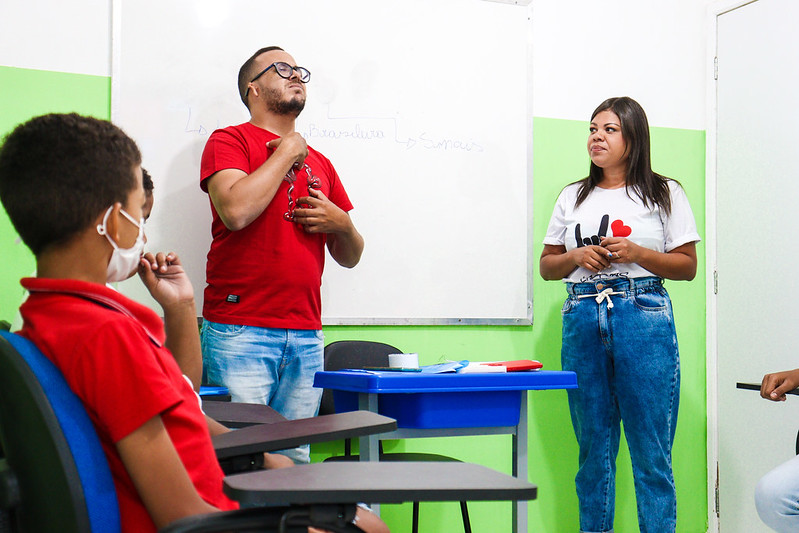 As aulas de Libras, iniciadas pela Escola há mais de um ano, são gratuitas e ofertadas nos três turnos, para facilitar o acesso aos interessados. “A Escola de Idiomas atende, tanto aos alunos da rede municipal, que estudam do 4º ao 9º ano, como também aos servidores da Prefeitura que tenham interesse em aprender Libras. Neste dia 24 de abril, Dia Nacional da Libras, nós temos o orgulho de fazer parte dessa difusão do ensino da língua, para que mais pessoas aprendam e consigam comunicar-se com pessoas surdas e garantir a sua acessibilidade em todos os espaços”, pontuou o coordenador pedagógico da Escola de Idiomas, George Cabral.
