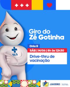 No próximo sábado (14), das 8h da manhã às 12h30, será realizado mais um drive-thru de vacinação na Orla II, oferecendo mais comodidade à população. O espaço contará com a presença do Zé Gotinha, símbolo nacional das campanhas de vacinação, trazendo alegria e conscientização para o público presente.