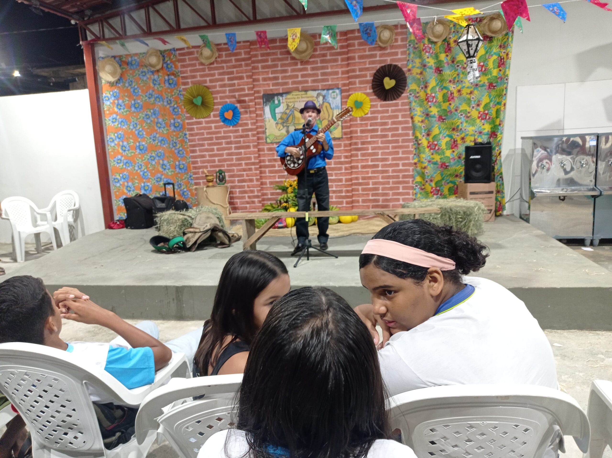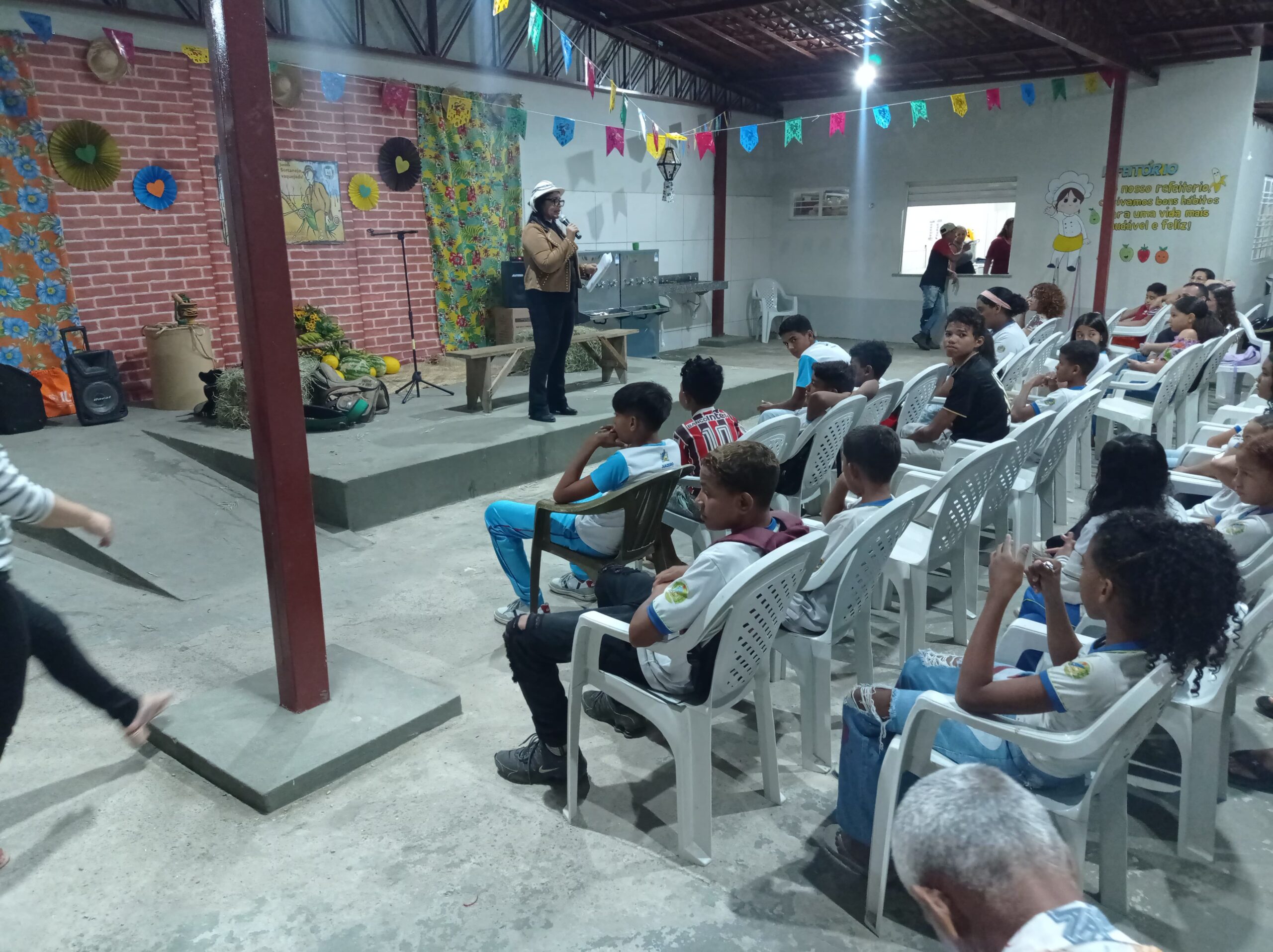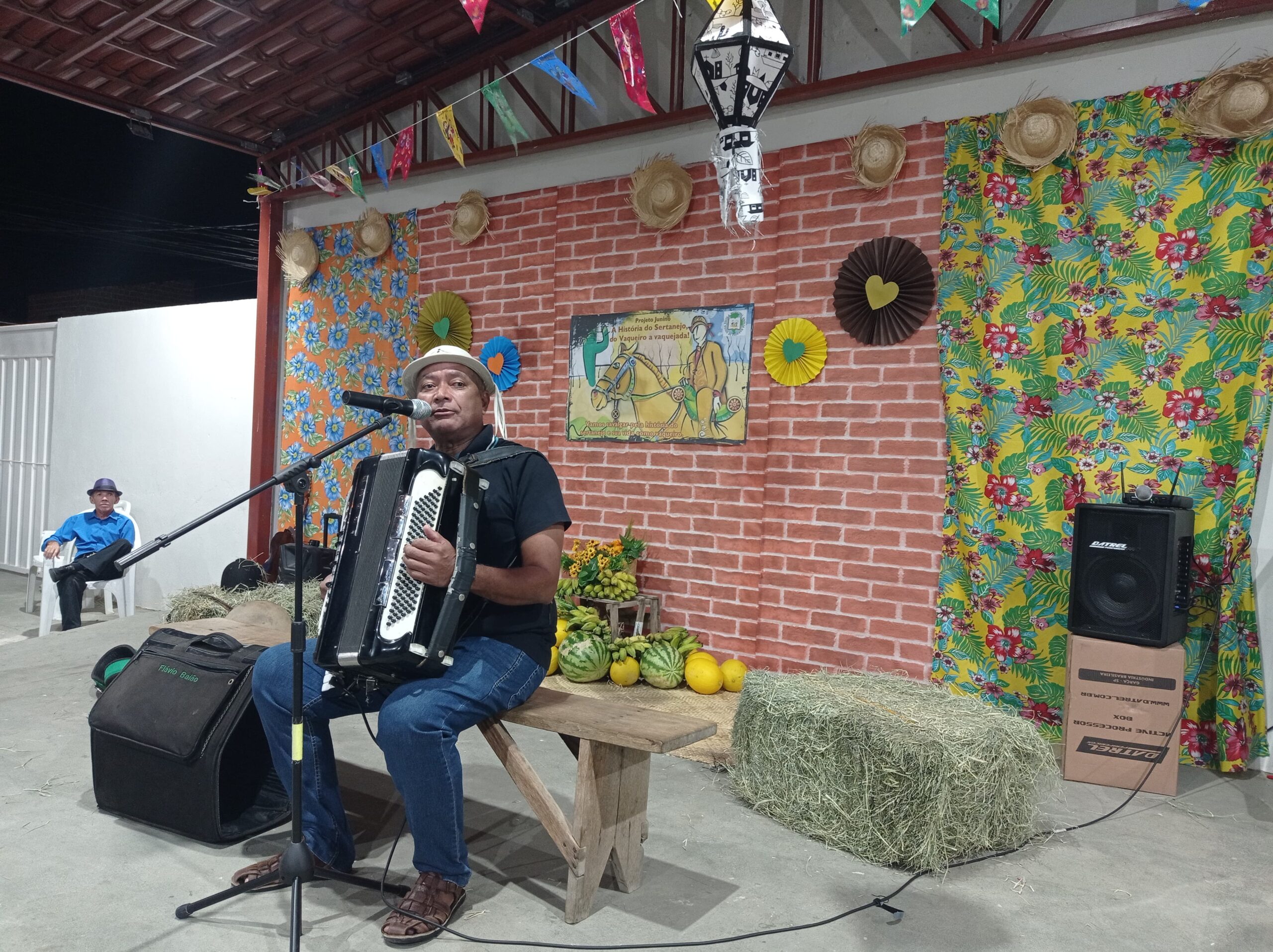 Contar a história do vaqueiro e da vaquejada na região Nordeste! Esse é o objetivo do projeto junino 2025 da Escola Municipal Anália Barbosa de Souza. A abertura do projeto aconteceu na noite desta terça-feira (20) e reuniu a comunidade escolar, o repentista Valdir Lemos e o cantor Flávio Baião.