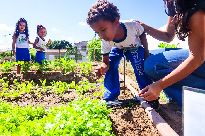 Estudantes da Escola Municipal de Educação Infantil Caic Misael Aguilar (Emei Caic), da Prefeitura de Juazeiro, através da Secretaria de Educação e Juventude (Seduc), ganharam um novo recurso pedagógico. Desenvolvida a partir de uma parceria estabelecida entre a unidade escolar, o Conselho Municipal da Pessoa com Deficiência (CMPD) e a Faculdade UniBRAS, foi construída uma horta que tem a proposta de contribuir para a formação das crianças e ainda ser uma ferramenta de interação entre a escola e os pais.
