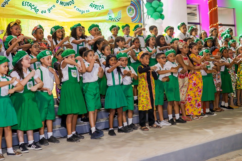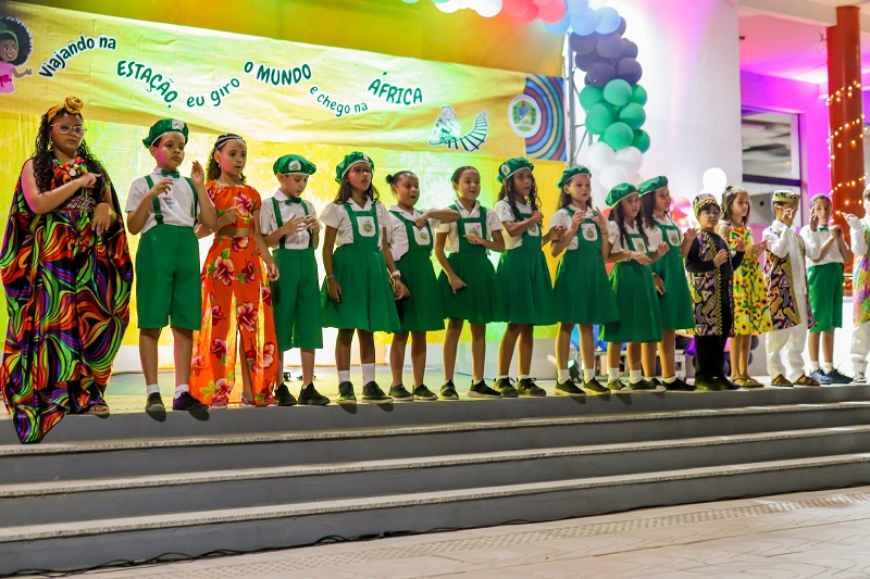 Com o tema ‘Viajando na Estação, eu giro o mundo e chego na África’, do projeto pedagógico desenvolvido durante o ano letivo, a escola recepcionou o público com diversas atividades alusivas à proposta, entre apresentações de dança, música, distribuição de lembrancinha, culinária afro e, claro, muitas homenagens dedicadas à escola e aos profissionais da instituição.