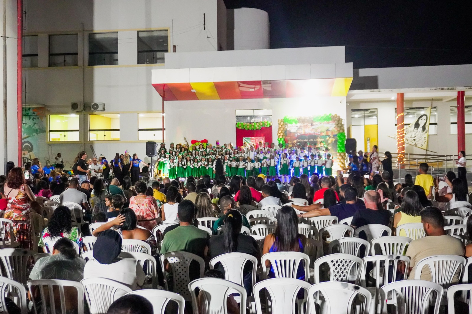 A Escola Municipal Estação do Saber José Carlos Tanuri reuniu, na noite desta terça-feira (17), familiares e toda comunidade escolar para celebrar os quatro anos de fundação da instituição, que foi fundada no dia 11 de dezembro de 2020. A programação também contou com a culminância do projeto pedagógico ‘De lá pra cá, de cá pra lá, viajando na estação eu giro o mundo e chego em Portugal’, iniciativa da unidade escolar que trabalhou, durante todo o ano letivo, temáticas relativas aos povos originários.