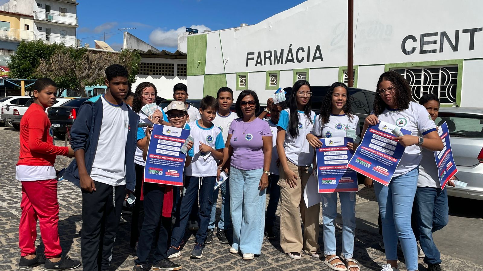 Estudantes da Escola Municipal Professora Terezinha Ferreira de Oliveira realizaram, nesta terça-feira (27), uma ação de conscientização ambiental alusiva ao programa Juazeiro Limpa. Durante a manhã, alunos do 7º e do 8º ano do Ensino Fundamental II entregaram panfletos e cartazes no centro da cidade e conversaram com a população sobre a importância do descarte correto do lixo.