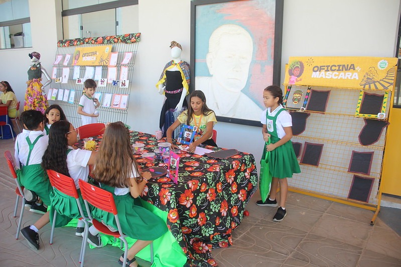 Já na Escola Municipal Estação do Saber José Carlos Tanuri, a Feira de Empreendedorismo virou Feira Black, como explicou a gestora da escola, Virna Sarissa. “Estamos dando continuidade à culminância do nosso projeto pedagógico ‘Viajando na estação, eu giro o mundo e construo saberes’, que esse ano teve como tema a África, e transformamos a Feira de Empreendedorismo em Feira Black. Realizamos algumas oficinas, como a de bonecas abayomi, de máscaras, turbantes, tranças, feira da pechincha, entre outros, e os estudantes estão trabalhando com uma moeda que criamos aqui na estação, os trilhos”, disse.