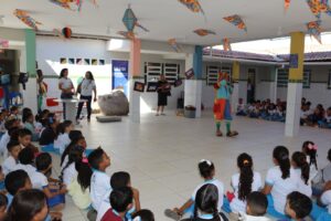 Durante a programação, os alunos participaram da coleta e separação de materiais recicláveis, que foram posteriormente doados à COOPERFITZ, fortalecendo a parceria entre a escola e os catadores locais. A aluna Sara Vitória, atenta a tudo que ouviu, resumiu o aprendizado do dia. “O evento foi muito legal e divertido. Eu aprendi que não se deve jogar lixo na rua. Tem que separar o lixo e organizar para a coleta” explicou.