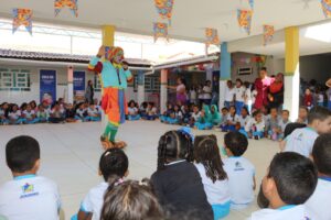 Além da coleta, a manhã foi de muita diversão e aprendizado. O palhaço Poquinho animou a criançada com brincadeiras, jogos e dinâmicas sobre preservação ambiental. De forma lúdica, e com muita música, as crianças entenderam a importância da reciclagem e do cuidado com o meio ambiente. Também houve premiação para aqueles que conseguiram coletar mais lixo reciclável e plantação de mudas no quintal da escola.