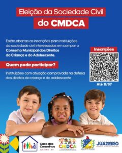 A Prefeitura de Juazeiro, por meio do Conselho Municipal dos Direitos da Criança e do Adolescente (CMDCA), prorrogou o prazo de inscrições para instituições da sociedade civil e de ensino superior interessadas em participar da eleição que definirá a nova composição do colegiado para o biênio 2025-2027. As inscrições seguem abertas até o dia 11 de julho de 2025 e devem ser realizadas exclusivamente através do link: https://forms.gle/nCtwqM3BB6jkvvag9.