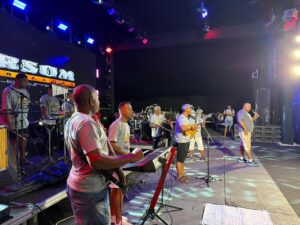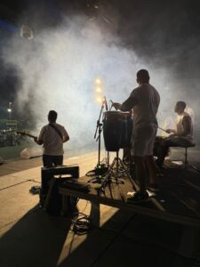 A abertura do Ensaio ficou por conta da banda Os Carrancas, que levou ao palco marchinhas, sambas, frevos e clássicos do axé, resgatando memórias de antigos carnavais e convidando o público a cantar e dançar. Encerrando a noite, a banda Swing do Japa manteve a animação em alta, com um repertório vibrante que aqueceu ainda mais os tamborins.