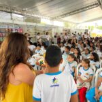 A autora Socorro Lacerda também passou pela carreta conversando com os alunos sobre a importância da leitura e apresentando seu novo livro “O Monstro da Caatinga” e provocando nos alunos o amor pelas novas descobertas, convidando alguns pequenos para uma leitura compartilhada cheia de afeto e aprendizagem. Um dos corajosos leitores foi o Samuel Matheus que explicou empolgado a experiência de ler para uma multidão. “Esse livro é muito criativo e a história dele é muito boa mesmo, eu recomendo. Eu li junto com a autora Paratodos os meus colegas e ainda ganhei o livro de presente”, contou tímido, mas muito feliz.