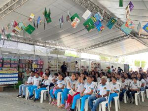 Um verdadeiro mundo de palavras e encantamento estacionou em Juazeiro nesta quarta-feira (22), durante a programação do Juá Literária, maior evento literário da região. Crianças com olhos brilhando de curiosidade se transportaram para o fabuloso universo da Carreta Literária, a biblioteca itinerante da editora IMEPH que, em parceria com a Prefeitura de Juazeiro, entregou música, dança, livros, contação de histórias, alegria e muito aprendizado.