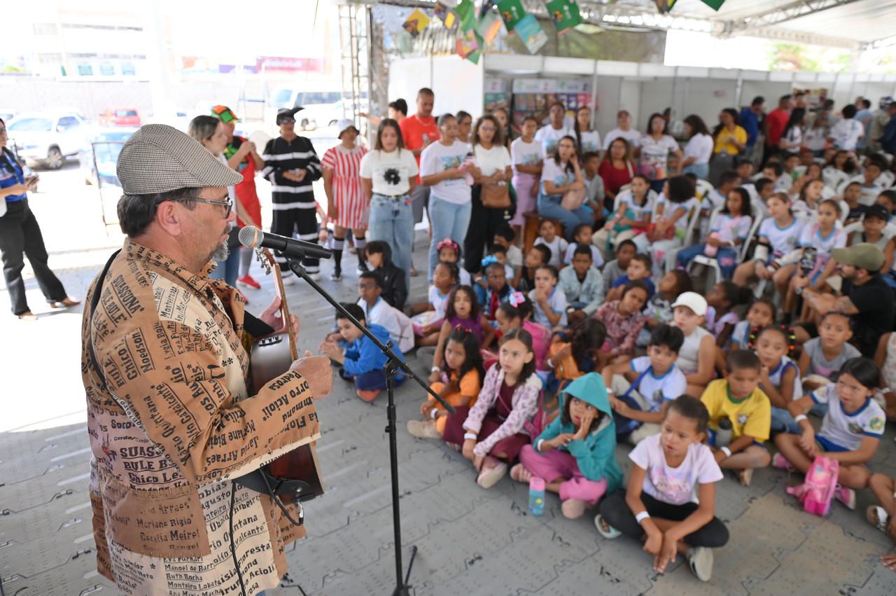 Pela manhã, o artista musical Zé Livrório, apresentou a magia da poesia musicada com letras e melodias divertidas e contagiantes, que não deixaram ninguém parado. A cada frase cantada, a próxima vinha da voz potente dos pequenos leitores que cantaram, riram e participaram ativamente das dinâmicas.