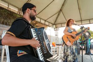 A programação da tarde foi finalizada ao som de Tião Simpatia e do grupo Rimas INC, que uniram música, repente, rimas, improviso e oralidade, mantendo viva a tradição nordestina de contar histórias com ritmo, crítica e encantamento.