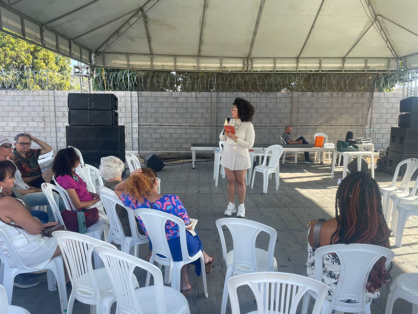 “É uma alegria imensa estrear aqui na Juá Literária, na Praça dos Poetas. Esse projeto é poesia para ser dita, cantada e sentida. Vim celebrar esse espaço, trazendo a força dos nossos poetas e a energia dessa terra.”