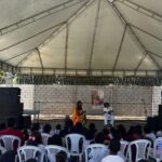 À tarde, foi a vez do carismático Zé Livrório envolver a garotada com histórias, humor e consciência ambiental. “Que privilégio pra Zé Livrório estar aqui na Juá Literária. A importância de entregar o livro, deixar cada um com seu livro na mão e falar da preservação do Rio São Francisco. Essa é a missão do Zé: divertir, brincar e deixar um legado.”