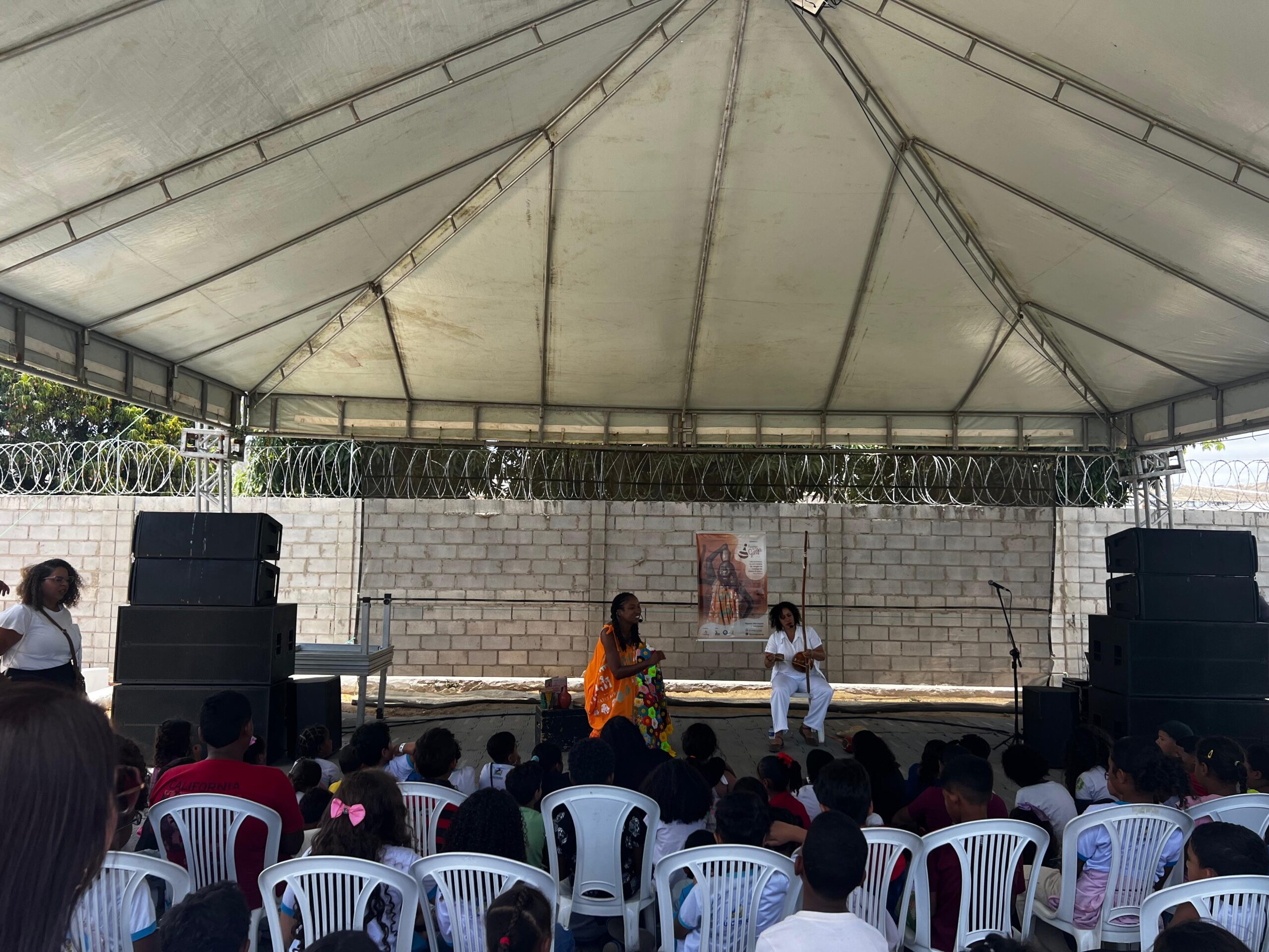 Durante o dia, o espaço recebeu o espetáculo “Os Dengos na Muringa de Voinha”, apresentado pela escritora Ana Fátima e mestra Maria Bonita, que trouxe ao público elementos da cultura afro-brasileira por meio da dança, da música e da oralidade. “É muito importante um evento como esse, trazer as crianças da cidade para conhecer outras linguagens feitas com protagonismo negro, autoria negra e alimentando os nossos afetos.”