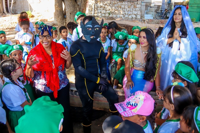 A visita faz parte do projeto ‘Viajando na Estação, eu giro o mundo e construo saberes’, que, em 2023, tem como recorte a África. Para comemorar o aniversário de Juazeiro, o projeto desembarcou na Orla de Juazeiro com a personagem vó Maria. Uma africana que veio conhecer a cidade e aproveitou a tour para contar as histórias do Nego D’água, de Nossa Senhora da Rapadura e da Mãe D’água.
