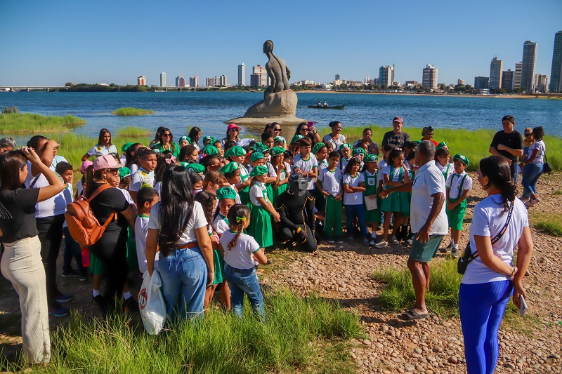Os estudantes da Escola Municipal Estação do Saber José Carlos Tanuri tiveram uma manhã diferente nesta sexta-feira (14). Os alunos embarcaram em uma aventura pela Orla de Juazeiro para conhecer algumas das lendas e histórias que povoam o imaginário dos moradores da cidade, como o Nego D’água, Nossa Senhora da Rapadura e a Mãe D’água.