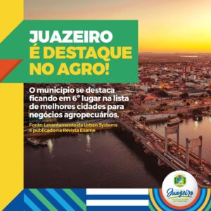 A cidade de Juazeiro também foi classificada como a 6ª melhor cidade do país no setor econômico do agronegócio, de acordo com um levantamento feito pela consultoria Urban Systems e publicado na Revista Exame. Essa posição representa um avanço em relação a 2021 e coloca Juazeiro como a única cidade do Nordeste entre as dez melhores colocadas.