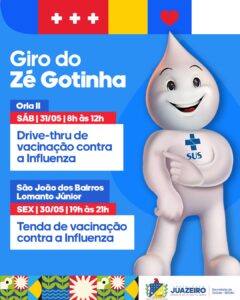 A Secretaria de Saúde de Juazeiro/ Sesau informa à população sobre a programação especial de vacinação contra a Influenza durante o final de semana. A ação visa ampliar a cobertura vacinal no município, facilitando o acesso da população à imunização.