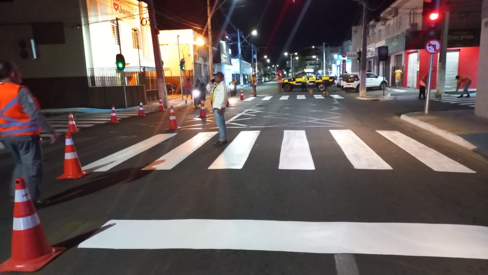 Para não impactar na fluidez do trânsito, os serviços foram realizados no período noturno. A equipe de sinalização da AMTT realizou os serviços de revitalização de faixas de pedestres, áreas de estacionamento, linhas divisórias de fluxo e demais elementos de horizontal que são para orientação no trânsito.