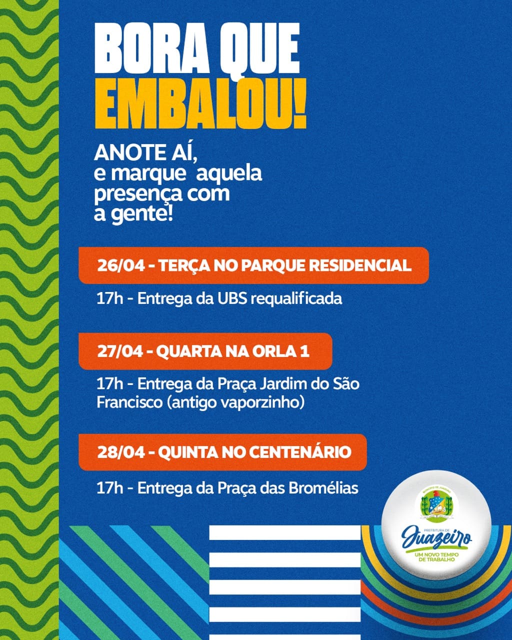 Entre as entregas, reestruturação de Unidade Básica de Saúde (UBS) e inaugurações de praças, garantindo conforto, lazer, saúde, qualidade de vida e bem-estar aos juazeirenses.