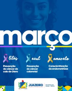 O mês de março está finalizando e a Prefeitura de Juazeiro, por meio da Secretaria de Saúde (Sesau), segue orientando a população sobre às campanhas do Março Lilás, Azul e Amarelo, promovendo ações de prevenção e conscientização sobre doenças que afetam milhares de brasileiros.