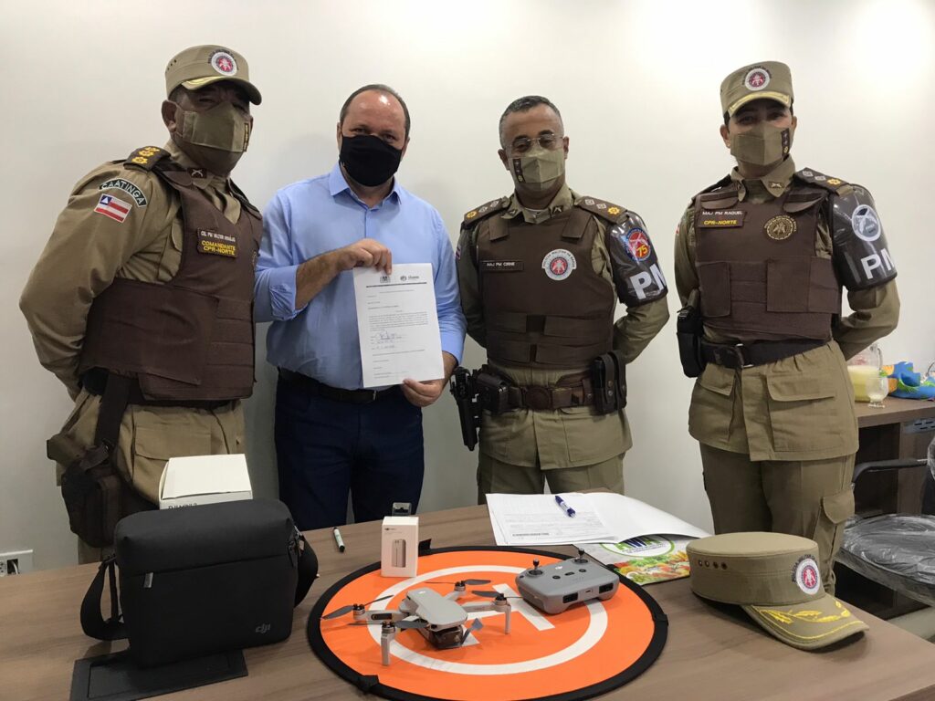 O Mercado do Produtor de Juazeiro celebrou, nesta quinta-feira (28) a entrega de um drone à 75ª Companhia Independente da Polícia Militar (CIPM). O equipamento, cedido na forma de cessão de uso, irá auxiliar o trabalho da 75ª Companhia Independente da Polícia Militar (CIPM), nas operações no Mercado do Produtor e será operado pelo major Éderson Cirne, que é habilitado junto à Agência Nacional de Aviação Civil (Anac) e órgãos de regulação de drones.