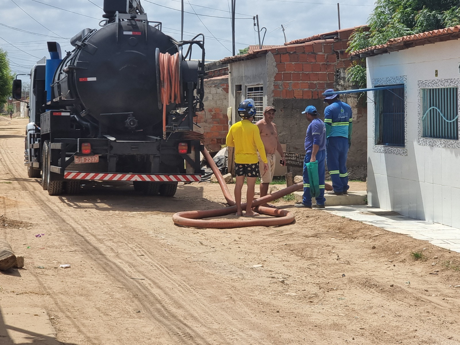Seu Manoel Cirilo da Silva, morador da rua 02 do Bairro Itaberaba, estava há dias com a casa invadida pelo esgoto. A situação era tão crítica que foram necessários dois caminhões para sugar toda água e dejetos da residência. “Agora vou poder dormir tranquilo, pois há dias não tinha paz com essa situação. Por minha casa ser mais baixa, toda água oriunda do esgoto entrou aqui causando esse transtorno”, contou.