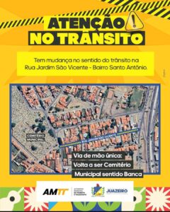 A Prefeitura de Juazeiro, por meio da Autarquia Municipal de Trânsito e Transportes/AMTT, divulga uma série de mudanças no trânsito da cidade para garantir a mobilidade e o bom fluxo de veículos, além dasegurança do público durante os dois grandes eventos que acontecerão nos próximos dias: o 13° Congresso Brasileiro de Agroecologia e o Festival Juá literária. Haverá a interdição temporária da Orla 2 entre os dias 15 e 25 deste mês impactando em várias vias, exigindo ajustes no tráfego para minimizar os congestionamentos.