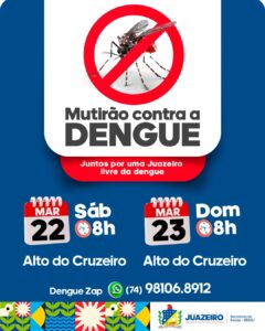 A Sesau reforça que os cidadãos podem realizar denúncias e colaborar nas ações de prevenção e combate ao mosquito através do número de contato do serviço Dengue Zap: (74) 9 8106-8912. O serviço está disponível de segunda a sexta-feira, das 8h às 17h, e permite que moradores da cidade enviem informações sobre possíveis focos do mosquito de maneira rápida e prática. Ao relatar situações suspeitas, a população ajuda os Agentes de Combate às Endemias (ACEs) a realizarem vistorias e eliminar focos, atuando diretamente na saúde e bem-estar de todos.