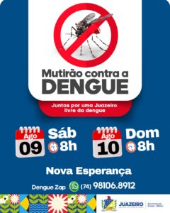 A Sesau reforça que os cidadãos podem fazer denúncias e colaborar com as ações de prevenção e combate ao mosquito por meio do serviço “Dengue Zap”, disponível no número (74) 9 8106-8912. O atendimento funciona de segunda a sexta-feira, das 8h às 17h, permitindo que moradores enviem informações sobre possíveis focos do mosquito de maneira rápida e prática.