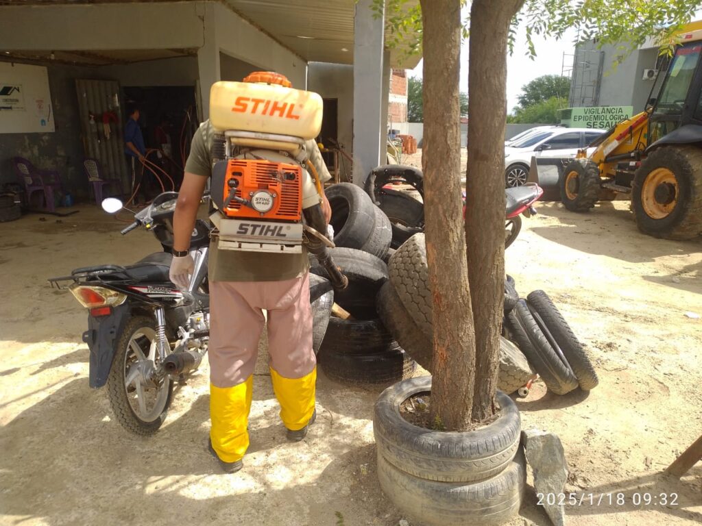 Também foram feitas ações em pontos considerados de risco, como borracharias, oficinas mecânicas, locais de reciclagem e imóveis abandonados, onde o acúmulo de material e lixo pode favorecer a proliferação do mosquito. Nesses locais, foi aplicado inseticida para controle do Aedes.